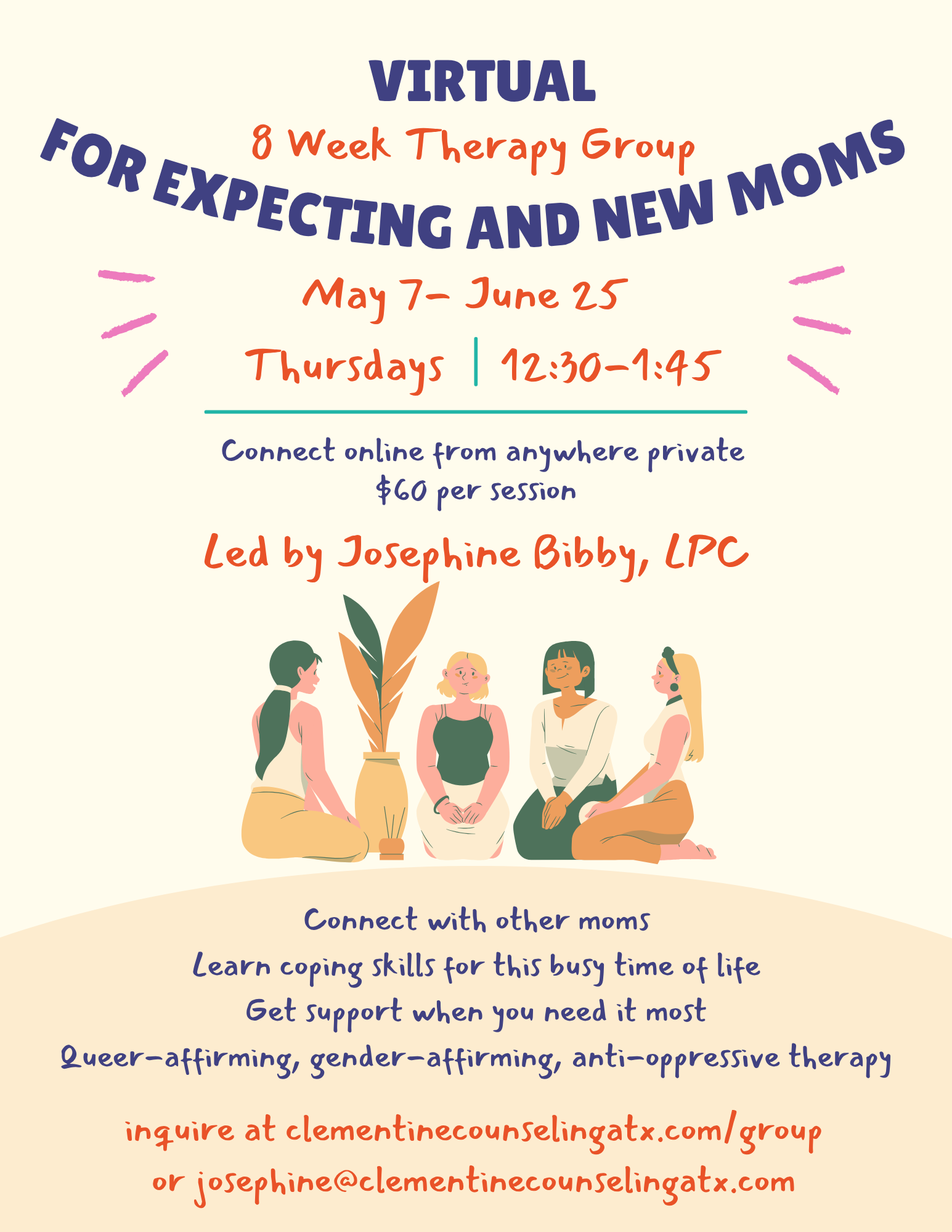 Group Therapy Therapy group for Expecting and New Moms | Now accepting members | Therapy group for Expecting and New Moms | Now accepting members | Therapy group for Expecting and New Moms | Now accepting members | Therapy group for Coping with Anxiety | Now accepting members | Therapy group for Coping with Anxiety | Now accepting members | Therapy group for Coping with Anxiety | Now accepting members |